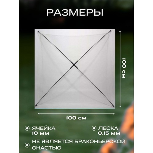 Полотно леска толщина 0,15 мм, ячея 10 мм.